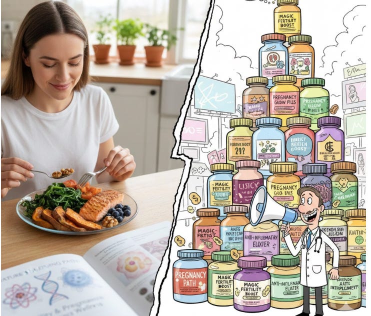 If you’re struggling to conceive or newly pregnant, you’ve likely encountered advice to adopt an “anti-inflammatory diet.” The pitch is seductive: inflammation causes infertility, inflammation harms pregnancy, so eat salmon and turmeric to have a baby.