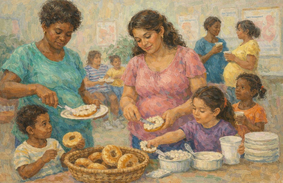 It was the early 1980s. AIDS was tearing through New York. Our high-risk obstetric clinic in Harlem was full of women who were hungry, sick, frightened, and showing up — which was itself a small miracle. My team decided to do something about the hunger part, which seemed like the piece most immediately within our reach. We called a local bagel shop. We negotiated a deal. Every clinic morning, seven dozen fresh bagels arrived with two pounds of butter and cream cheese and a box of disposable knives. The women ate. They stayed. They talked to the midwives. Not a single bagel survived to noon. We did this for four months and considered it, without exaggeration, one of the more effective public health interventions we had managed.