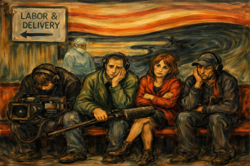 They had cameras. They had microphones. They had, I assume, a vision of what a hospital birth looks like: the shouting, the sprinting, the near-misses, the dramatic save. The kind of footage that earns a time slot.